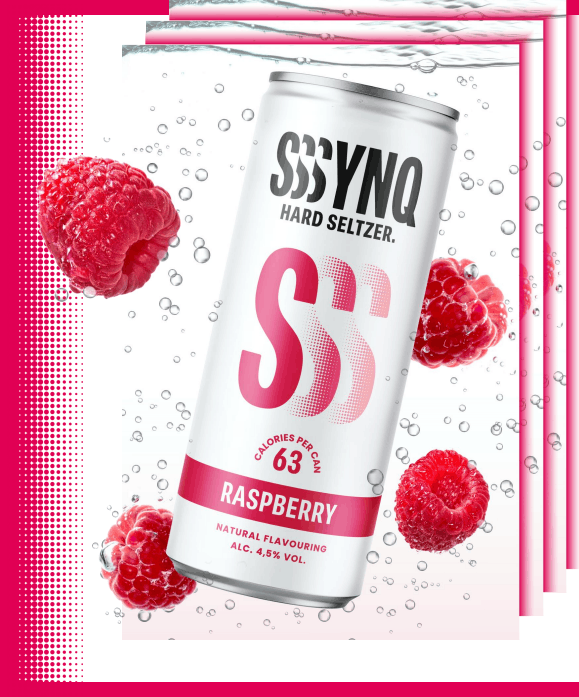 SYNQ Hard Seltzer Raspberry is een frisse, lichte hard seltzer met een natuurlijke framboostoets en een clean, crispy karakter.